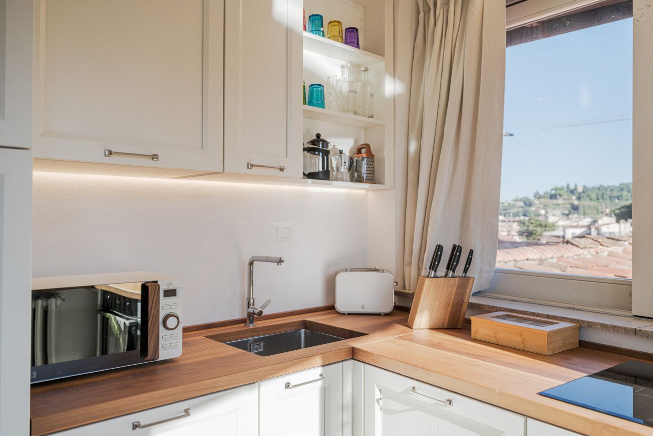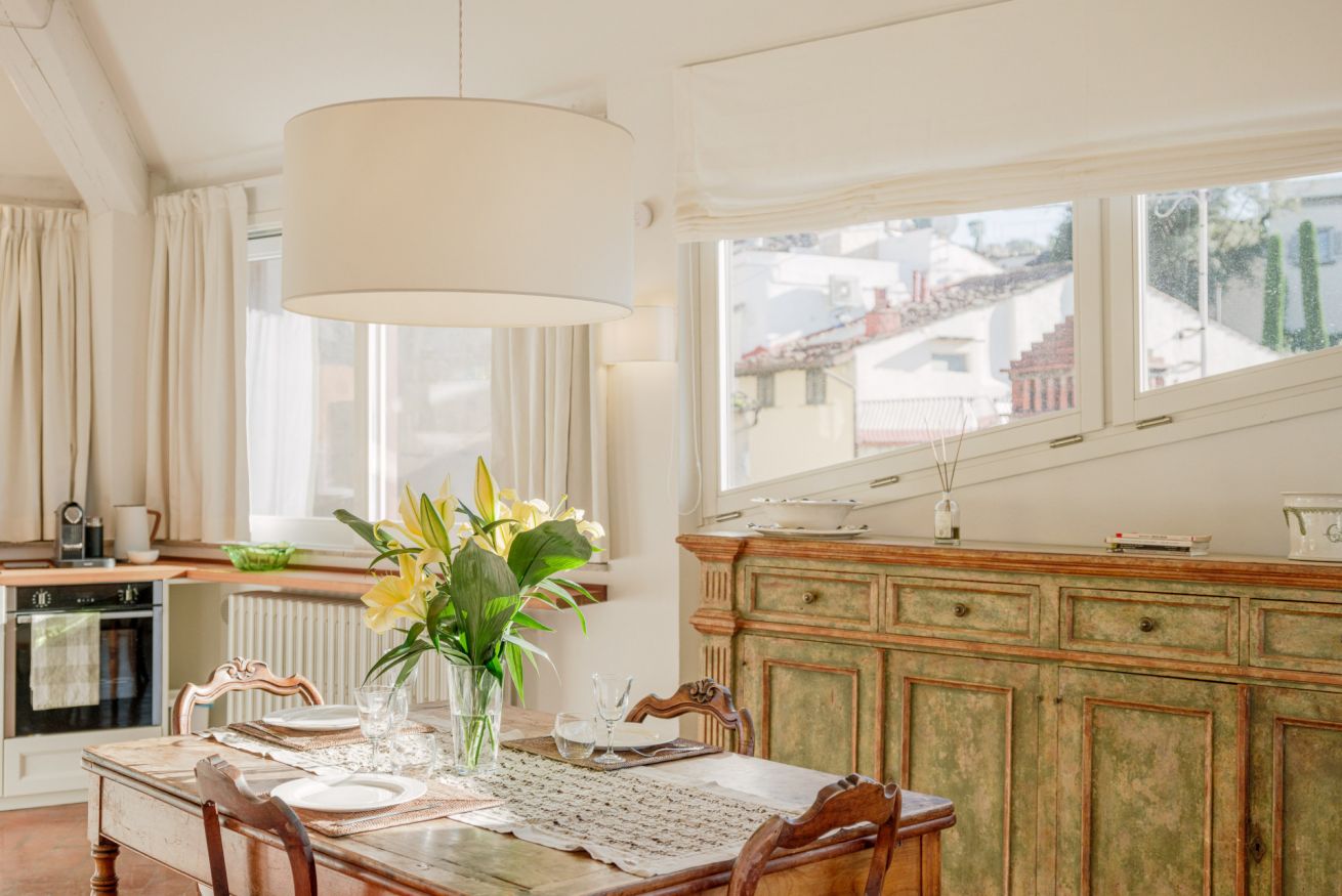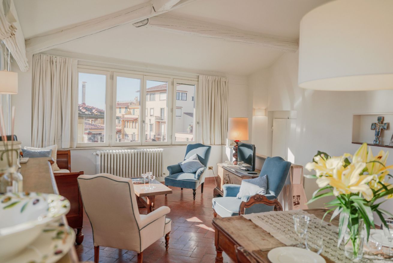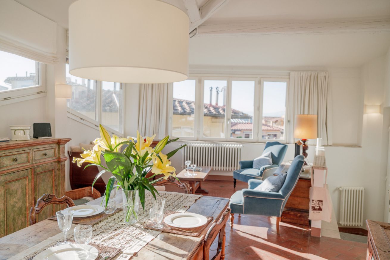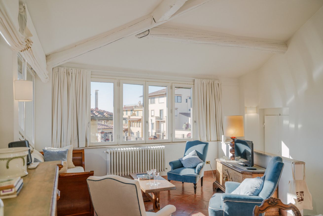 All’ultimo piano di un palazzo rinascimentale con ascensore e portineria, questo attico esclusivo regala viste spettacolari sull’Arno, sui tetti nascosti di Firenze e sulla cupola del Brunelleschi. A un passo dal Ponte Vecchio e dagli Uffizi, unisce fascino storico ed eleganza moderna per un soggiorno indimenticabile nel cuore della città.
